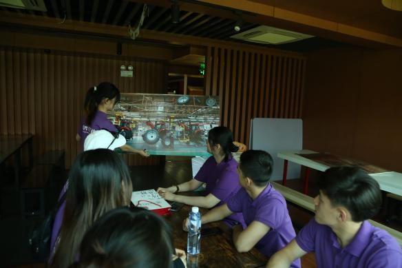 7月23日上午,实践团队前往中国一拖东方红工业游景区,重点参观了东方红农耕博物馆并进行了以“一拖农机制造”为主题的研学活动。中国第一拖拉机厂(简称“一拖”)是中国机械工业、农机工业的长子,在中国制造史上发挥了极其重要的作用。一走进东方红农耕博物馆,中外学生便被陈列的东方红LX1064拖拉机吸引了注意力。东方红LX系列拖拉机是中国一拖东方红拖拉机中最具有代表性的产品之一,彰显了中国一拖在我国农业现代化进程中发挥的重要作用。