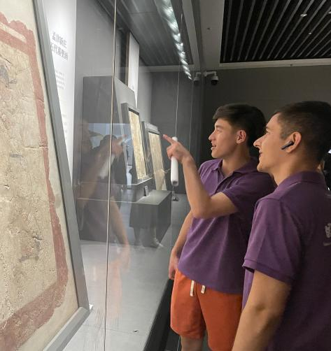 7月23日下午,中外学生来到洛阳古墓博物馆参观。洛阳古墓博物馆,是中国第一座以陈列历代典型墓葬为主要内容的专题性博物馆,分为历代墓葬、北魏帝王陵墓和壁画馆三大展区。