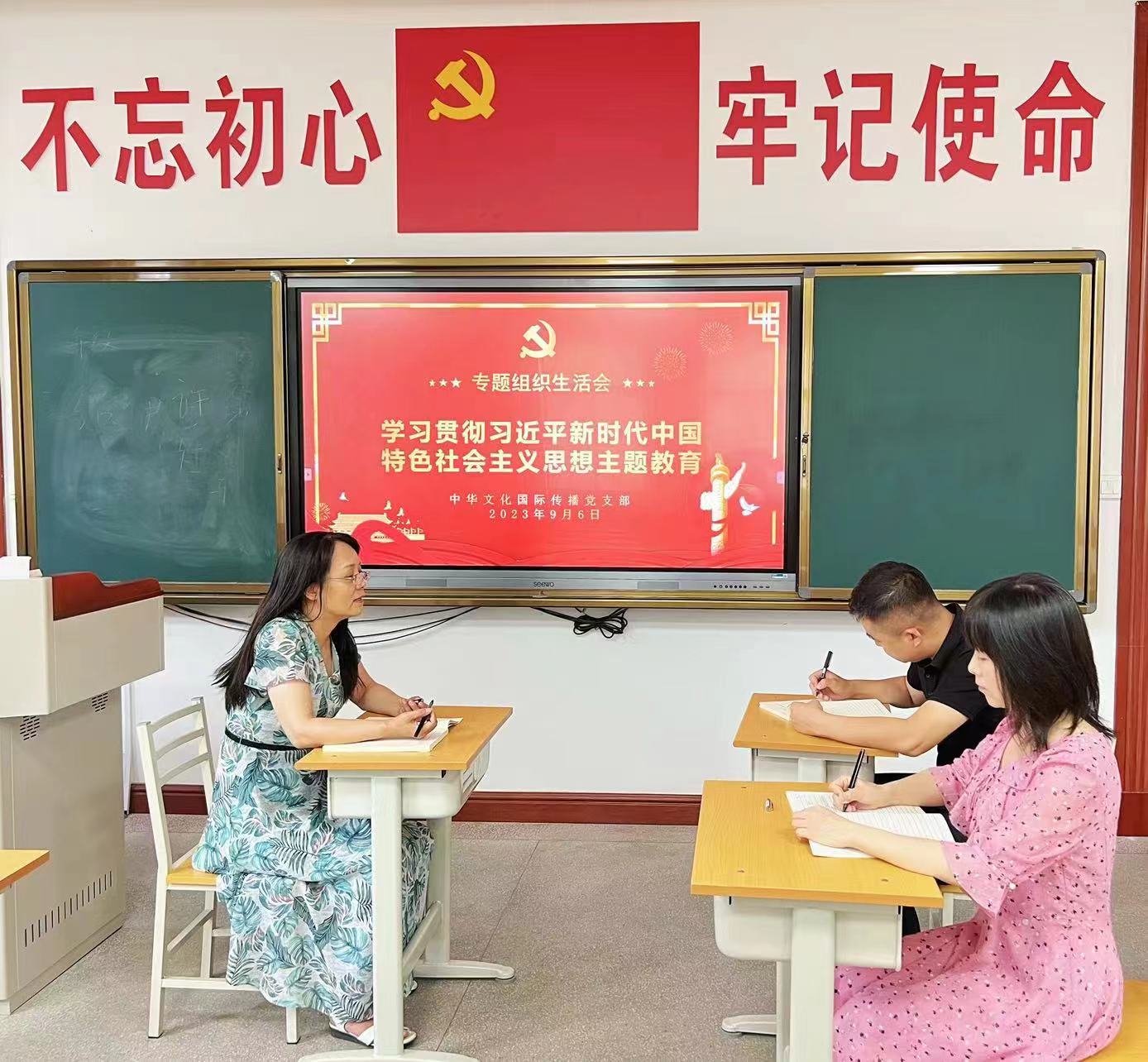 2023年9月6日下午,中华文化国际传播党支部在学院党员活动室召开学习贯彻习近平新时代中国特色社会主义思想主题教育专题组织生活会。此次专题组织生活会是在前期认真学习领会习近平新时代中国特色社会主义思想、深入开展谈心谈话的基础上进行的,组织生活会由支部书记冯雪俊主持,学院党总支组织委员贾泽林列席会议。