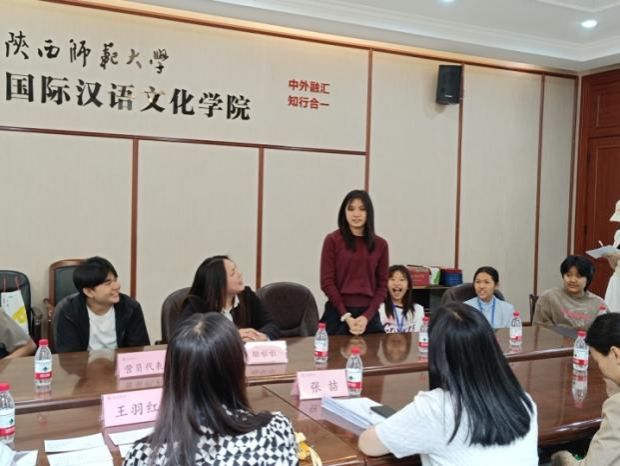 接着,酷啦啦老师在发言中向陕师大的全体教师和志愿者致以诚挚谢意。她表示,学员们在此次研学中不仅系统学习了汉语知识,还通过文化考察、民俗体验等活动深入了解了西安的历史与现代风貌。她特别提到,陕师大优质的教学资源和细致入微的管理与服务为研学活动提供了有力支持,希望未来能有更多泰国学生来学院进行交流,进一步促进中泰教育合作。随后,学员们也分享了在陕师大一个月学习的收获与感受,他们向老师们表达了诚挚的感谢,表达了这段经历对于他们学习汉语、了解中国文化的重要性,这会成为他们人生成长中难忘的回忆,并期待有机会再次来华深造或旅行。